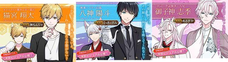 白狐、豆狸、猫又、犬神、鳥天狗など名前だけでなく姿まで変化するので、幻想的な世界での恋愛を楽しみたい人に特におすすめです。