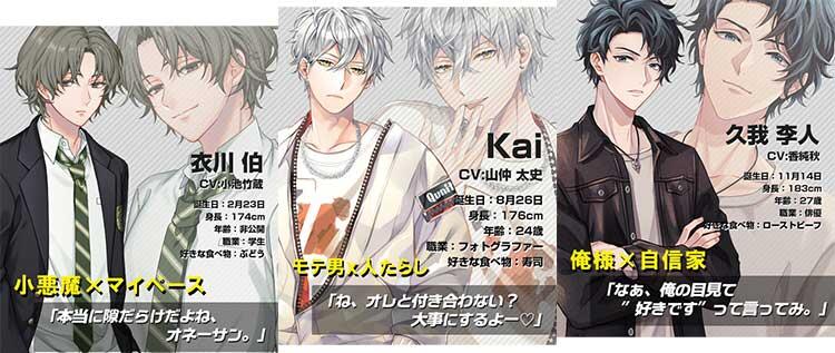 これまでの選択方式では実現できなかった、アナタが自由に送った言葉に彼達は反応し、現実彼氏と変わらないリアルな会話を返してくれます。