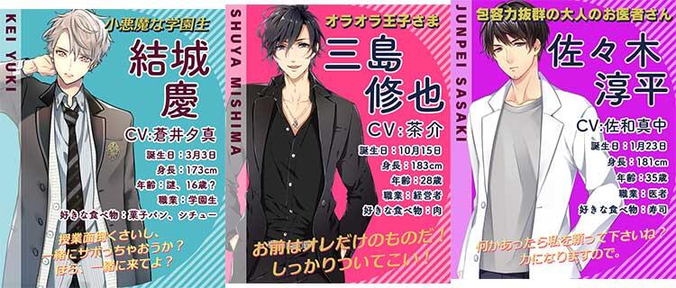 登場する男性の中から好きな彼を決めれます。